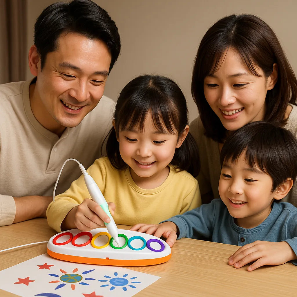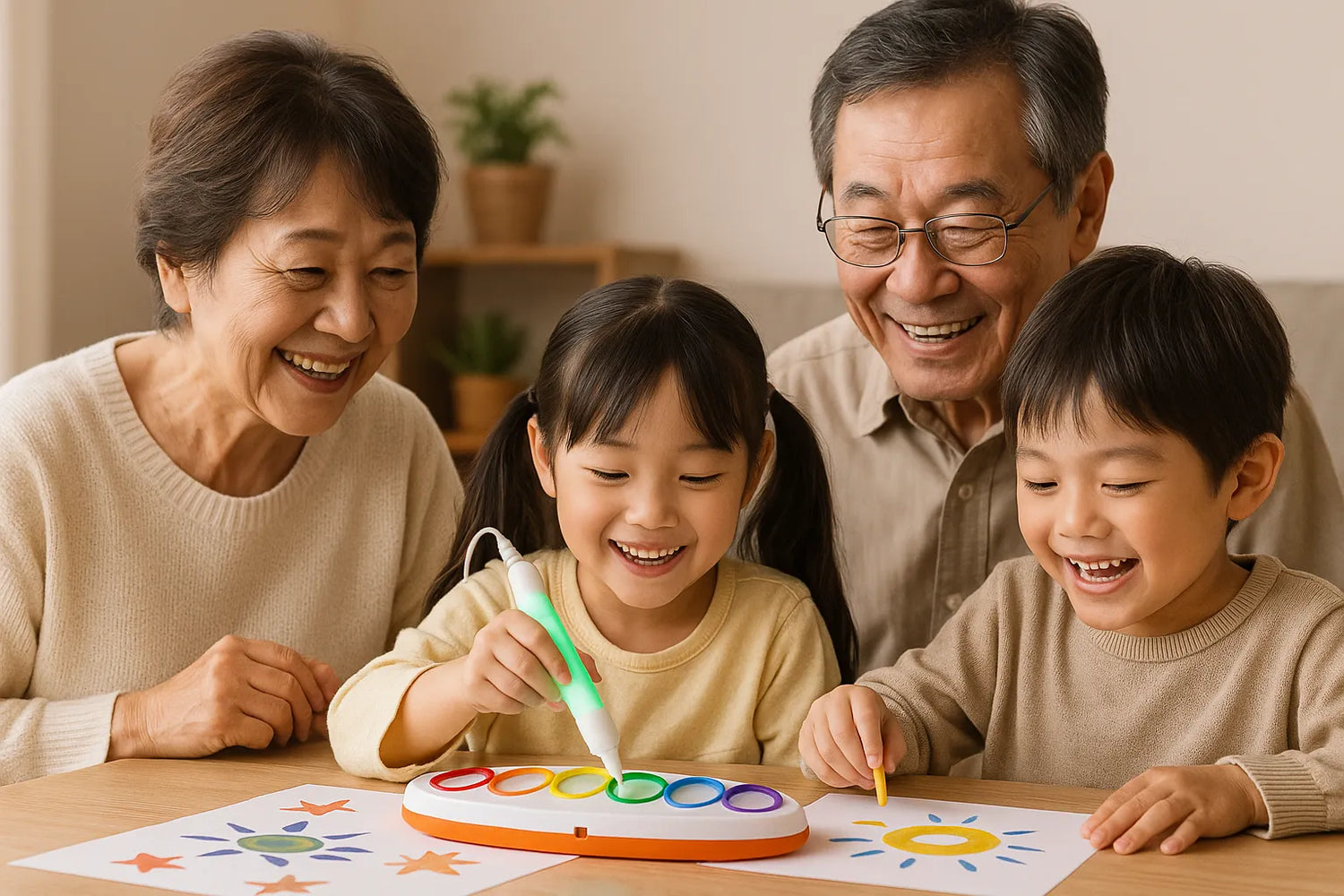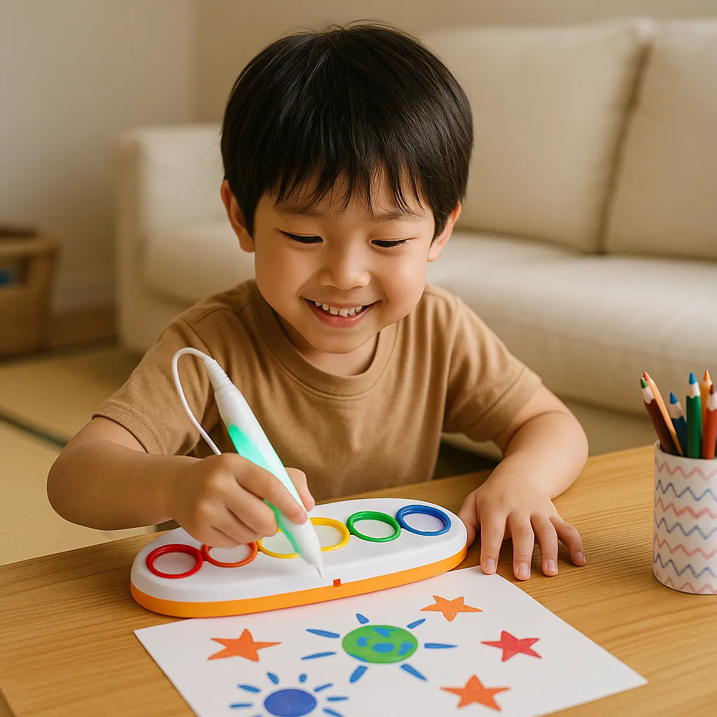 孫へのプレゼントとして購入しました。最初は『本当に汚れないのかな?』と半信半疑でしたが、実際に遊ばせてみると本当に服や机が汚れず、安心しました。孫たちはライトが光るブラシに夢中になって、楽しそうに色を塗ったり絵を描いたりしています。今まではテレビやタブレットを見る時間が多かったのですが、最近は『絵を描きたい!』と言って、自分から遊ぶようになりました。想像力や集中力が育っているのを実感でき、祖父母としてもとても嬉しいです。買って本当に良かったと思います